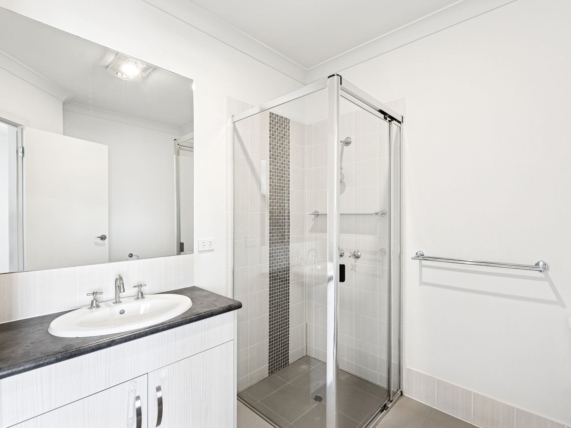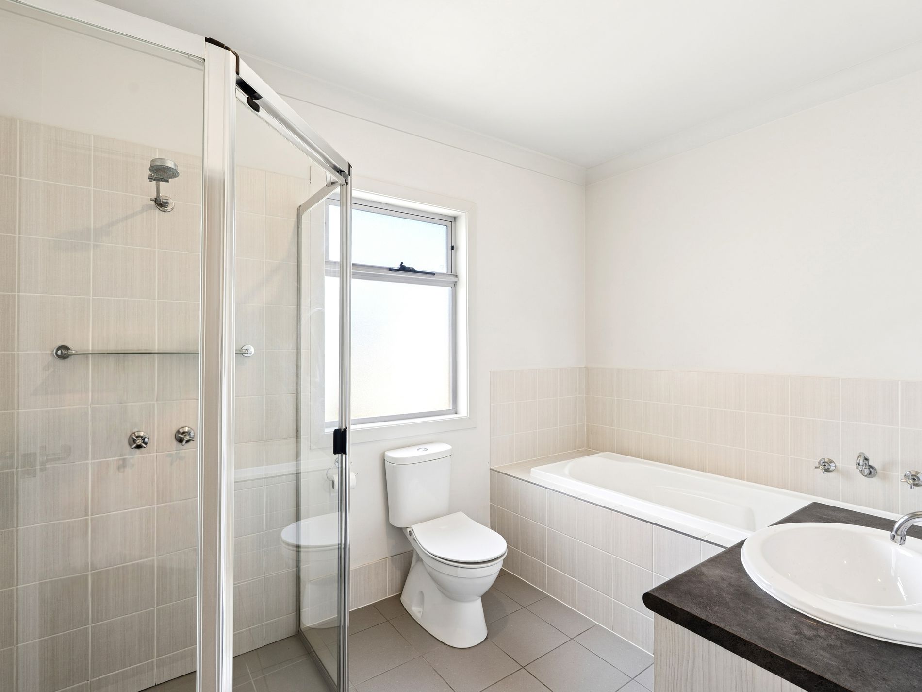 All three bedrooms are located on the upper level, providing separation from the living zones below. The main bedroom features a walk-in robe and private ensuite.