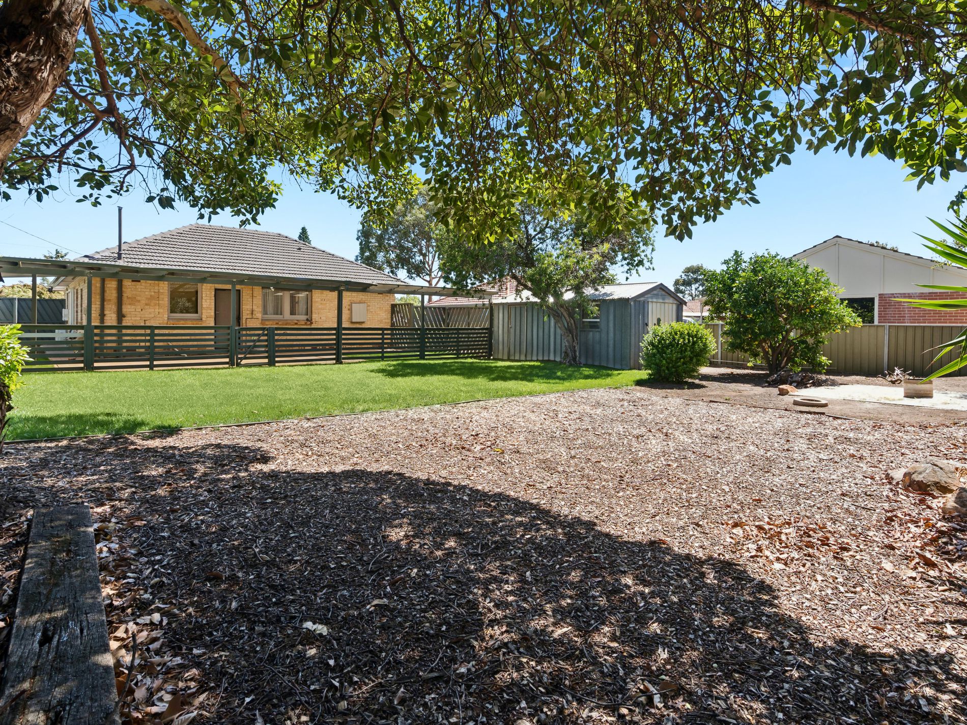 • Fenced separation between the entertaining area and yard for added safety
